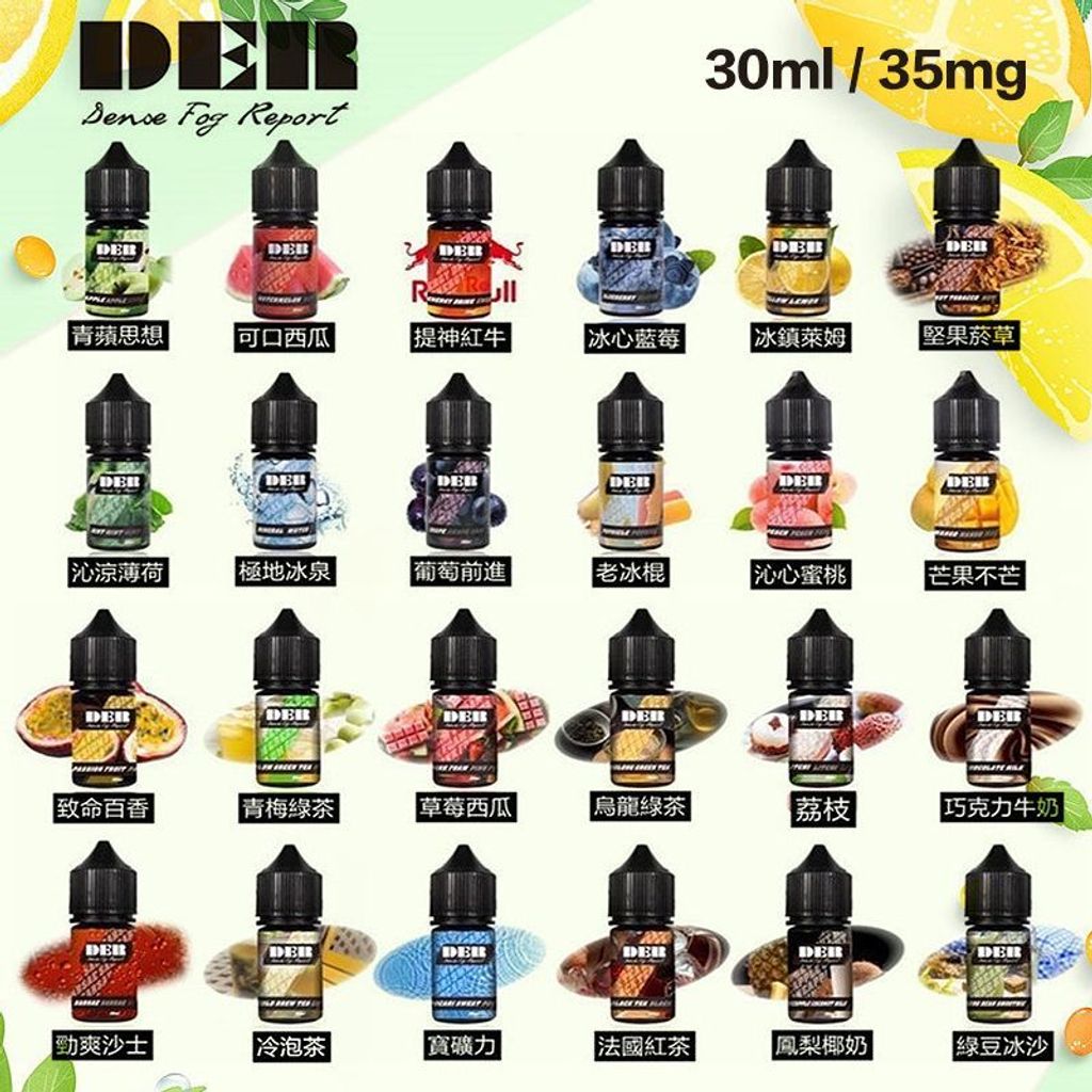 DER 小煙油系列是一款美國進口電子煙煙油,採用 30ml容量設計,提供多種不同風味選擇。系列口味涵蓋水果、薄荷、茶香與煙草等類型,適合喜歡多樣口味的電子煙使用者。